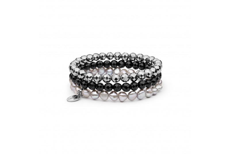 This stylish piece of jewelry is created by Gaura designers using freshwater pearls and terahertz and onyx gemstones. The variety of shapes and colors blend together to form a unique piece. Gaura Pearls products are wonderful works of art from nature itself, skillfully framed by Gaura designers. The combination of exquisite natural materials and human imagination has created refined beauty that enchants every woman.