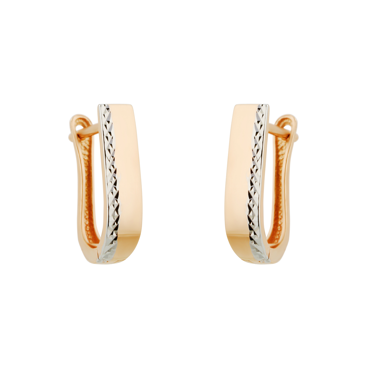 Two-tone gold earrings with a decorative engraved pattern. Stylish and versatile for everyday wear.