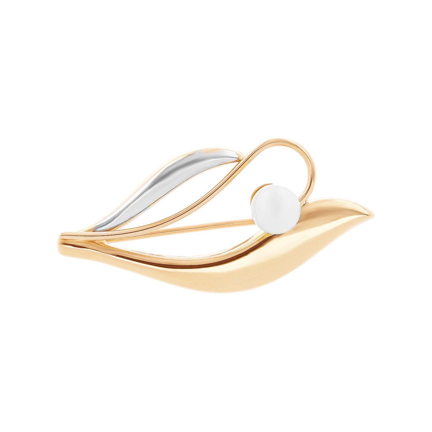 Elegant pearl gold brooch. The size of the 14K gold brooch is 3,3 x 1,6 cm.