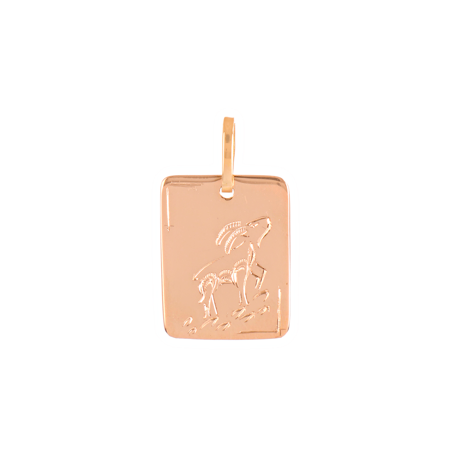 Beautiful 14K gold capricorn zodiac pendant. The size of the rectangular tag is 1,3 x 1,7 cm. Designed and manufactured in Estonia.