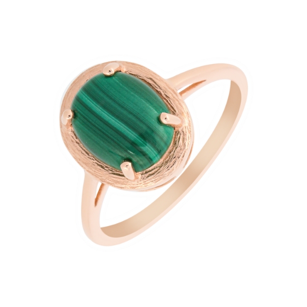 Spectacular malachite gold ring. The round cut malachite gemstone (9 x 7 mm) has a gorgeous green color. It is believed that malachite opens up the flow of money and supports abundance and prosperity.