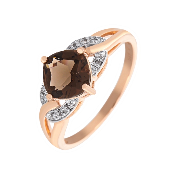 One of a kind smoky quartz and diamond gold ring. The ring features a cushion cut smoky quartz gemstone and small diamonds.