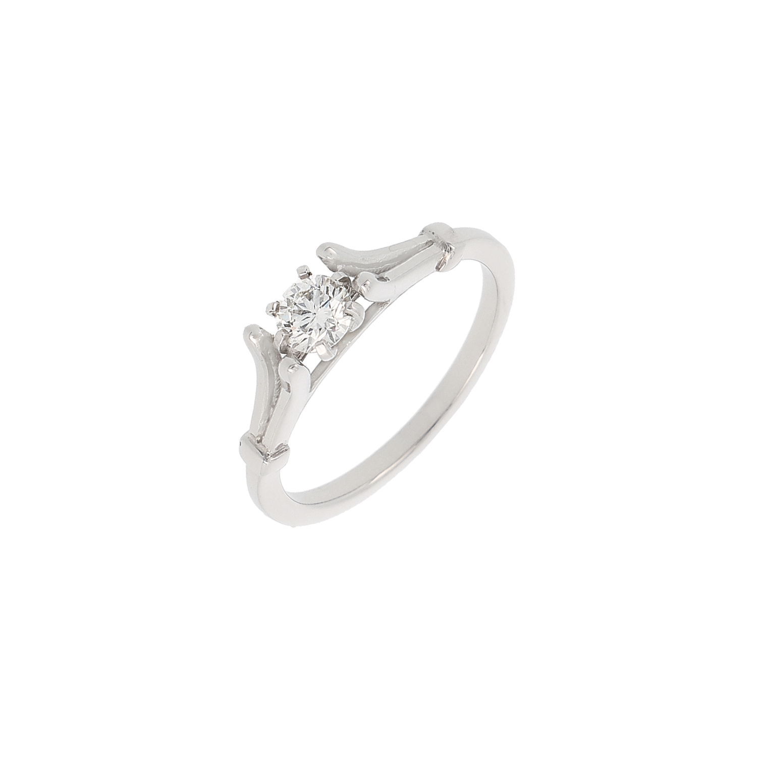 Elegant white gold diamond ring (0,38 ct H/SI). The size of the gemstone is 4,6 mm. This ring is a perfect choice, if you are looking for a unique diamond ring. Diamond is the most valued and hardest gemstone, symbolizing love and prosperity. The ring is designed and manufactured in Estonia.