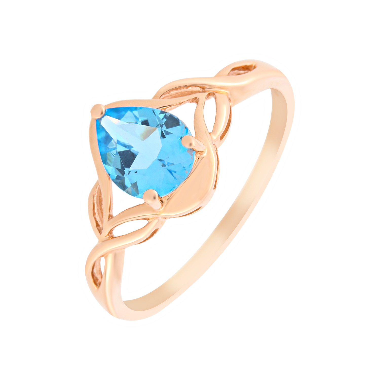 Elegant topaz gold ring. The ring features a teardrop shaped topaz gemstone with a wonderful blue color.