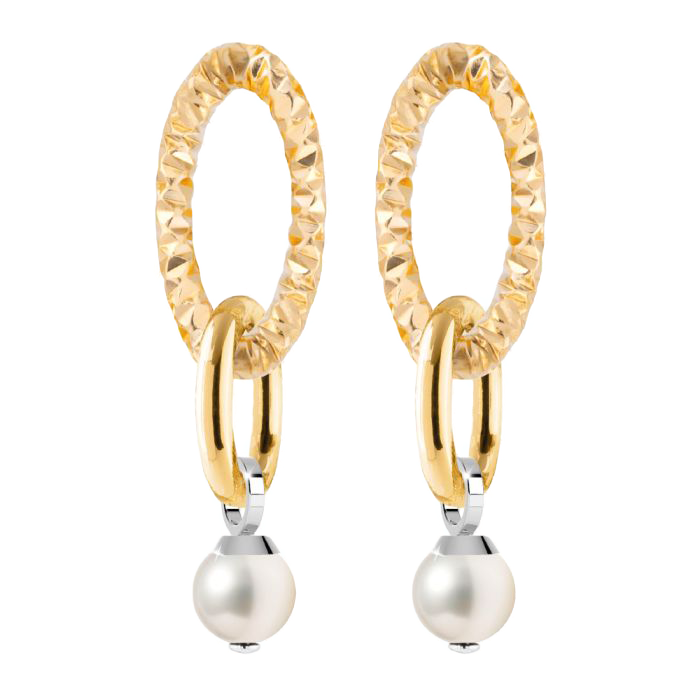 Элегантные серьги Rebecca, сочетающие современный дизайн золотых овальных звеньев и классическую красоту жемчужины. Рельефная фактура золотых элементов придаёт украшению сияние, а жемчужный подвес добавляет утончённости и женственности. Идеальный аксессуар как для повседневного стиля, так и для торжественных случаев.