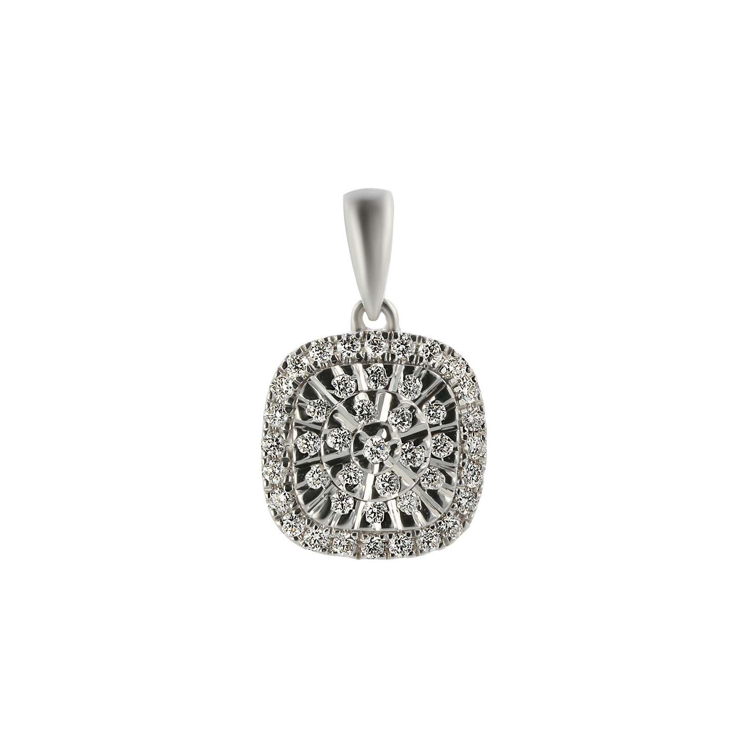 Элегантная и изысканная подвеска из белого золота, украшенная гармоничной композицией бриллиантов. В украшении использовано 43 бриллианта общим весом 0,172 карата: 1 бриллиант весом 0,006 ct, 18 бриллиантов общим весом 0,072 ct и 24 бриллианта общим весом 0,094 ct. Качество бриллиантов H/SI обеспечивает красивое сияние и чистоту. Классический дизайн делает эту подвеску универсальным и роскошным украшением.