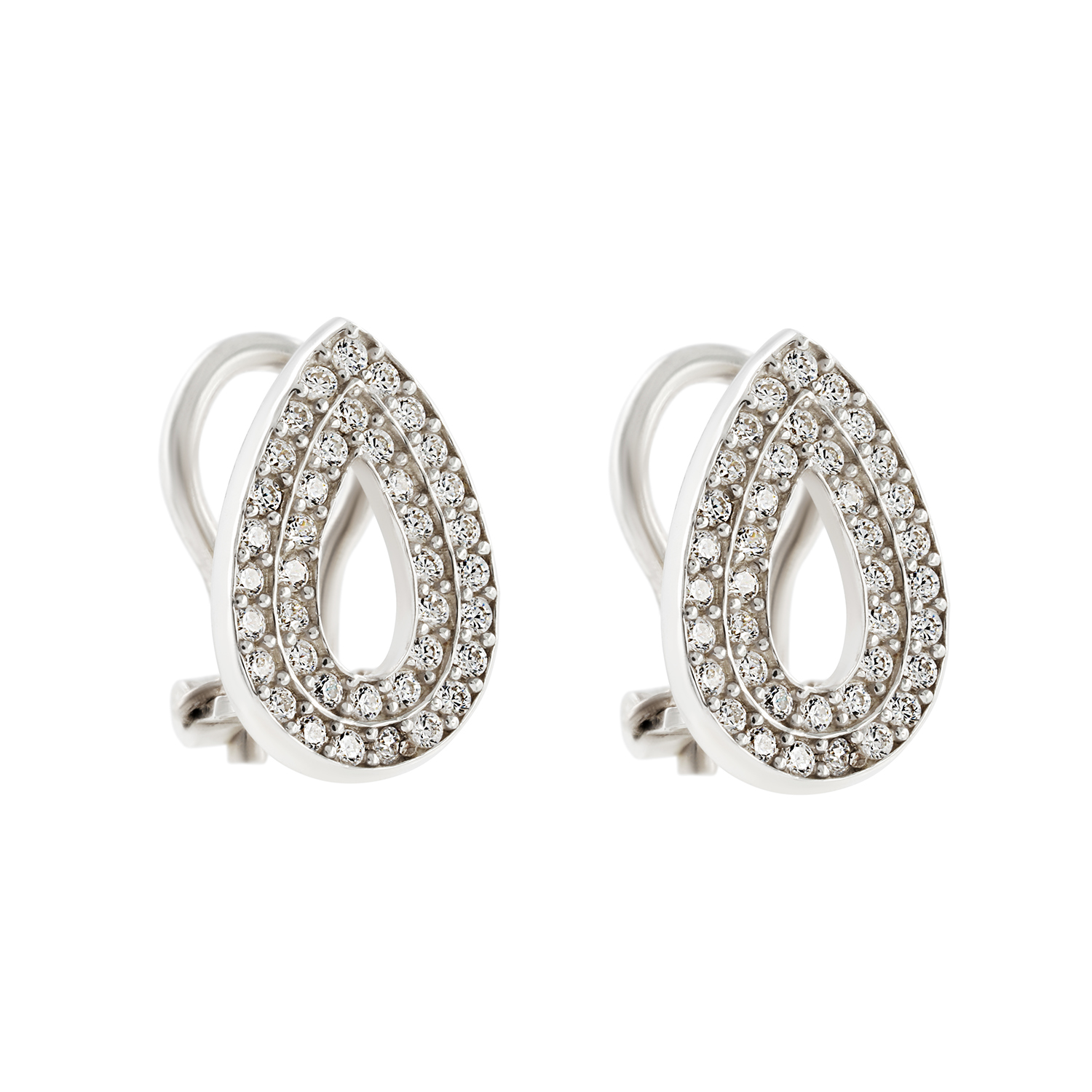 Красивые серебряные серьги с блестящими цирконами.