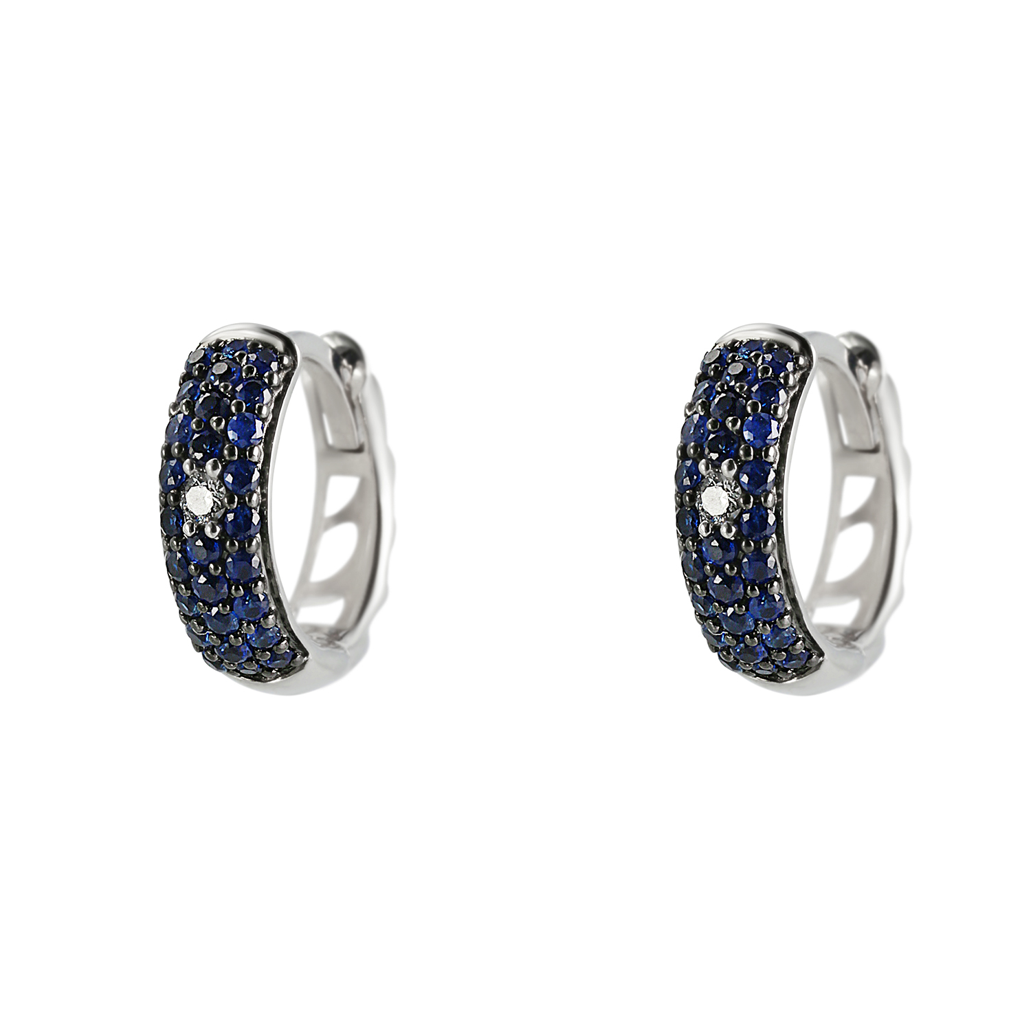 Элегантные серьги изготовлены из золота и украшены бриллиантами и сапфирами. В украшении использованы 2 бриллианта общим весом 0,028 карата (цвет H, чистота SI), а также сапфиры: 4 шт. общим весом 0,024 карата, 18 шт. – 0,162 карата и 32 шт. – 0,256 карата. Общий вес вставок составляет 0,442 карата. Классический и изысканный дизайн делает серьги подходящими как для повседневного ношения, так и для особых случаев.